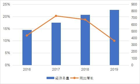 圖1:2016-2019年天心區(qū)服務(wù)業(yè)增長情況