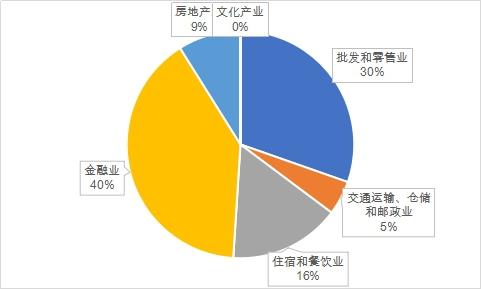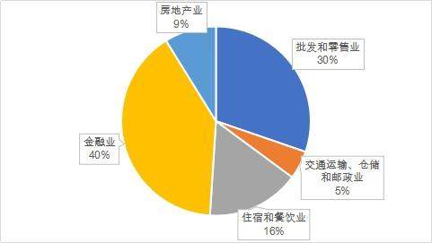 2017年天心區(qū)服務(wù)業(yè)五大支柱產(chǎn)業(yè)占比分別為金融業(yè)、批發(fā)和零售業(yè)、住宿和餐飲業(yè)、房地產(chǎn)和交通運(yùn)輸業(yè)占比分別為40%、30%、16%、9%和5%。金融業(yè)占比達(dá)到40%說明現(xiàn)代服務(wù)業(yè)高度發(fā)達(dá),是天心區(qū)服務(wù)業(yè)結(jié)構(gòu)調(diào)整和優(yōu)化的重要表現(xiàn)。房地產(chǎn)業(yè)占比僅僅為5%,說明經(jīng)濟(jì)擺脫了房地產(chǎn)“依賴癥”。