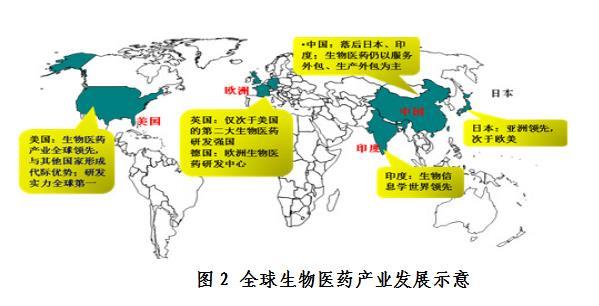 目前,全球生物醫(yī)藥產(chǎn)業(yè)呈現(xiàn)集聚發(fā)展態(tài)勢,主要集中分布在美國、歐洲、日本、印度、中國等地區(qū)。其中美、歐、日等發(fā)達(dá)國家占據(jù)主導(dǎo)地位。