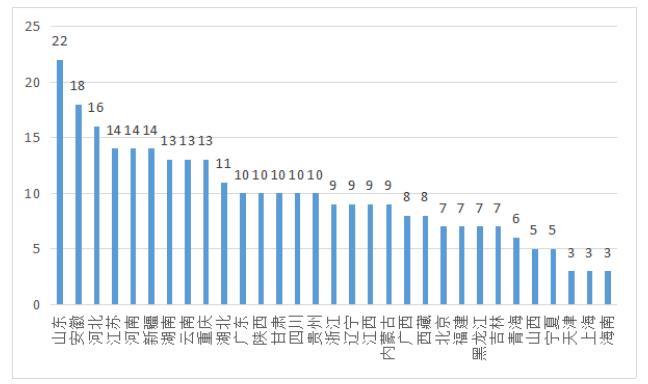 國家農業(yè)科技園區(qū)是保障國家糧食安全的重要基地,是加快農業(yè)科技創(chuàng)新創(chuàng)業(yè)和成果轉移轉化的重要平臺,是推動農業(yè)產業(yè)升級和結構轉型的重要支撐,是探索農業(yè)科技體制機制改革創(chuàng)新的重要載體?!秶肄r業(yè)科技園區(qū)發(fā)展規(guī)劃(2018-2025年)》提出:到2025年,把園區(qū)建設成為農業(yè)科技成果培育與轉移轉化的創(chuàng)新高地,農業(yè)高新技術產業(yè)及其服務業(yè)集聚的核心載體,農村大眾創(chuàng)業(yè)、萬眾創(chuàng)新的重要陣地,產城鎮(zhèn)村融合發(fā)展與農村綜合改革的示范典型。截止2020年底,科技部已認定國家農業(yè)科技園區(qū)九批共303個,其中東部地區(qū)94個、東北地區(qū)23個、中部地區(qū)70個、西部地區(qū)116個,西部地區(qū)占比最大。從省份來講,山東省擁有國家農業(yè)科技園區(qū)最多,達22個;天津、上海、海南擁有國家農業(yè)科技園區(qū)最少,為3個。